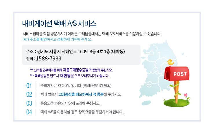 • 엔나비 네비게이션 서비스센터 ㅣ 주소: 경기도 시흥시 서해안로 1609. B동 4호 1층(대야동)